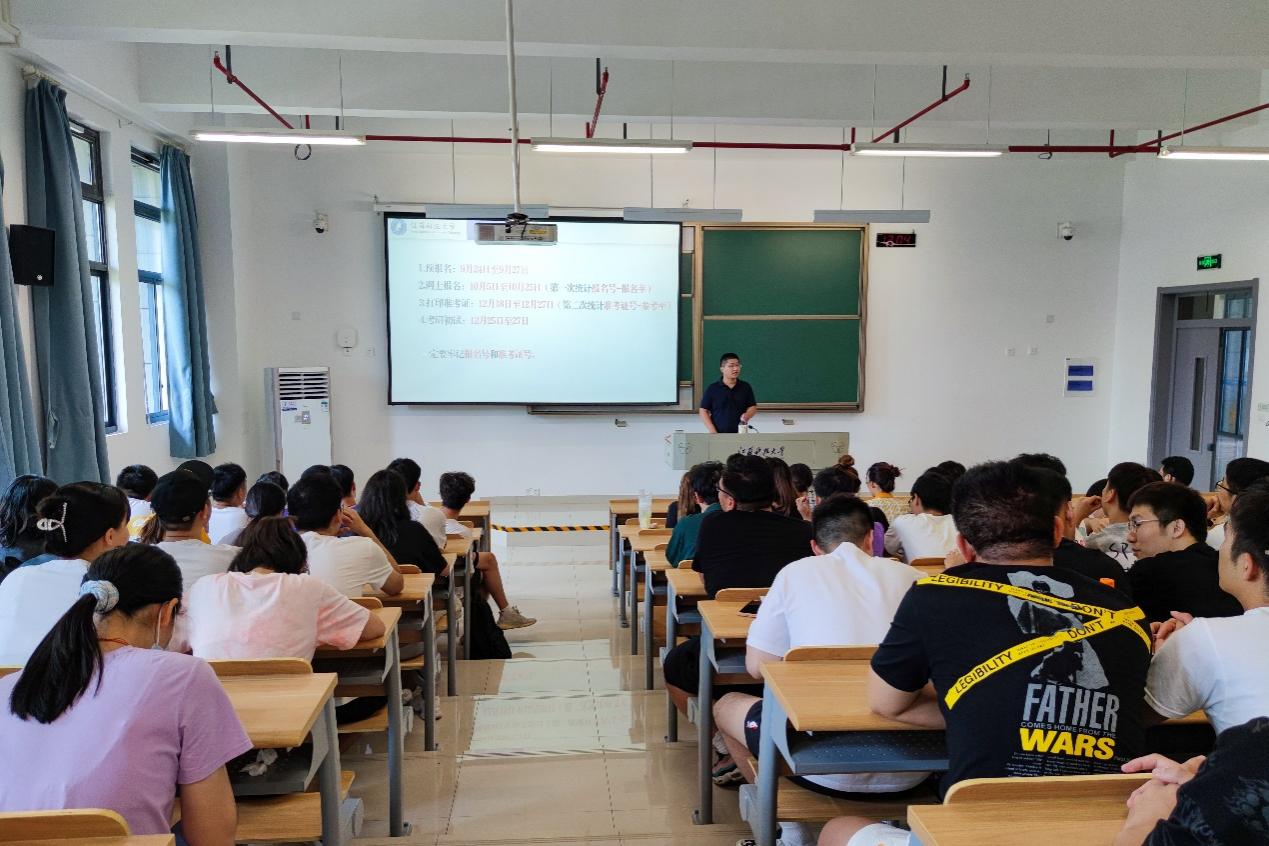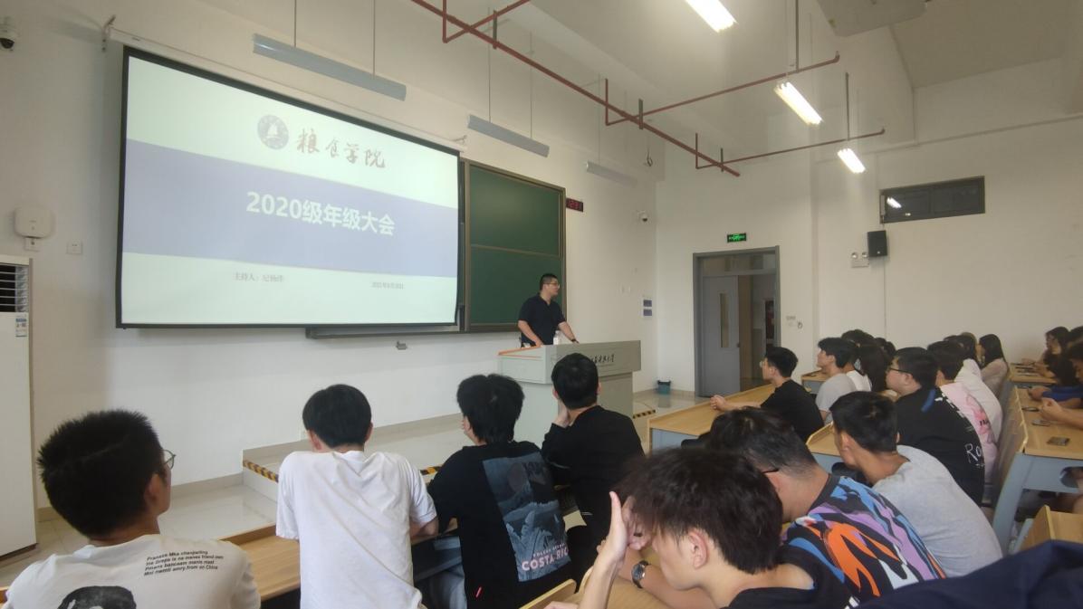 在2019级年级大会上,武兆文老师指出了目前的挂科率、重修情况以及四六级通过率等问题,要求同学们尽快确定本学期的学习目标,积极转变思想和学习态度,认真对待新的学期,要对自己的选择负责;对参与本创的同学,强调以严细认真的态度对待科研,要求真务实、创新发展、多出成果。