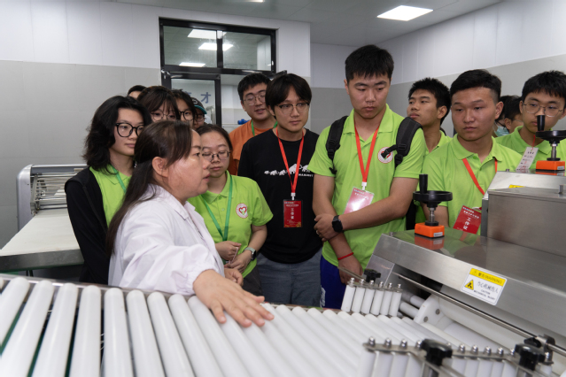 图为营员参观学习浙江农林大学食品中试车间