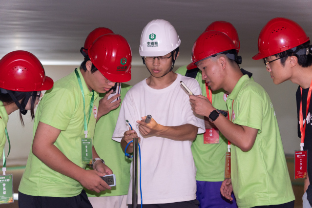 图为营员们在镇江中储粮学习粮仓测温测湿方法