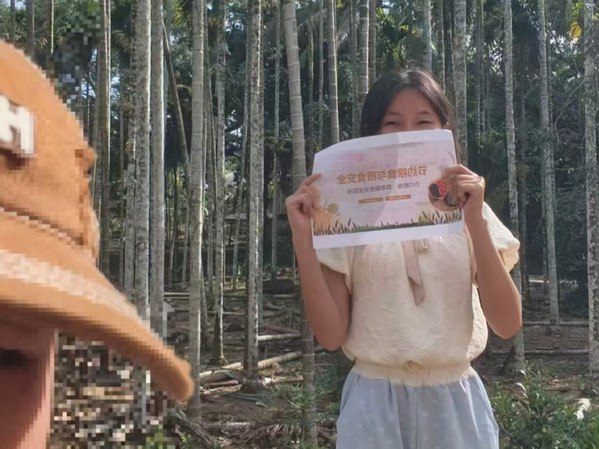 实践团成员娜孜艾尔开·努尔木汗在家乡社区开展活动,她布置好宣传展板、摆放好宣传手册,展板上的图文生动有趣——从稻田里沉甸甸的稻穗,到餐桌上香喷喷的米饭,一步步展现粮食的“成长之旅”,让大人小孩都能直观感受到“一粥一饭,来之不易”;手册上的小贴士通俗易懂,“按需买菜不浪费”“剩菜打包不丢人”“合理搭配不挑食”,每一句都贴合社区居民的日常生活,让人一看就懂、一学就会。